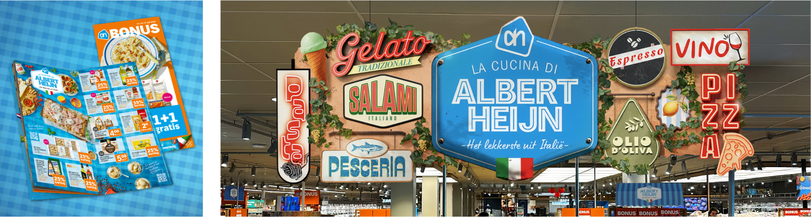 For three weeks, we transformed the supermarket floor into a sun-soaked Italian experience with La Cucina di Albert Heijn. With rich colors, warm typography and tasteful photography, we brought the spirit of la dolce vita to life. Across various owned and paid channels, we inspired customers to embrace their inner Italian — positioning Albert Heijn as the go-to destination for authentic Italian quality products.