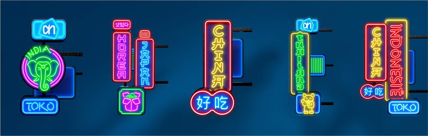 With Lekker Aziatisch (“Tasty Asian”), we gave customers not just inspiration, but all the tools to become true street-food chefs at home. The vibrant atmosphere of Asian night markets – full of neon lights, sizzling woks and the aromas of fresh street food – was brought to life on the shop floor and across multiple channels. With colorful neon assets, striking visuals and a fresh, modern style, we captured the energy of the market at Albert Heijn and inspired customers to recreate the best dishes from China, Indonesia, Japan, Korea, Thailand and India in their own kitchens.