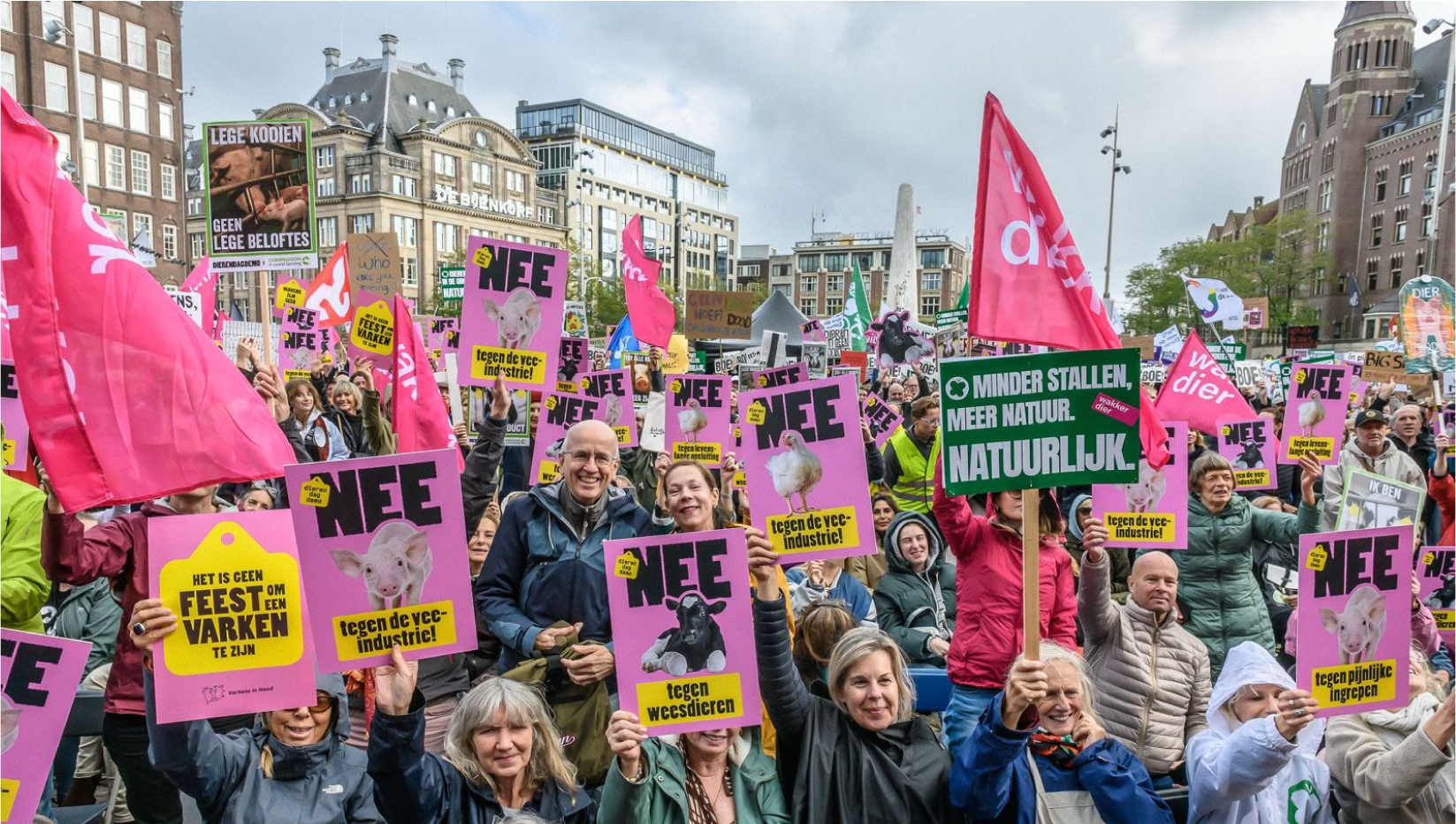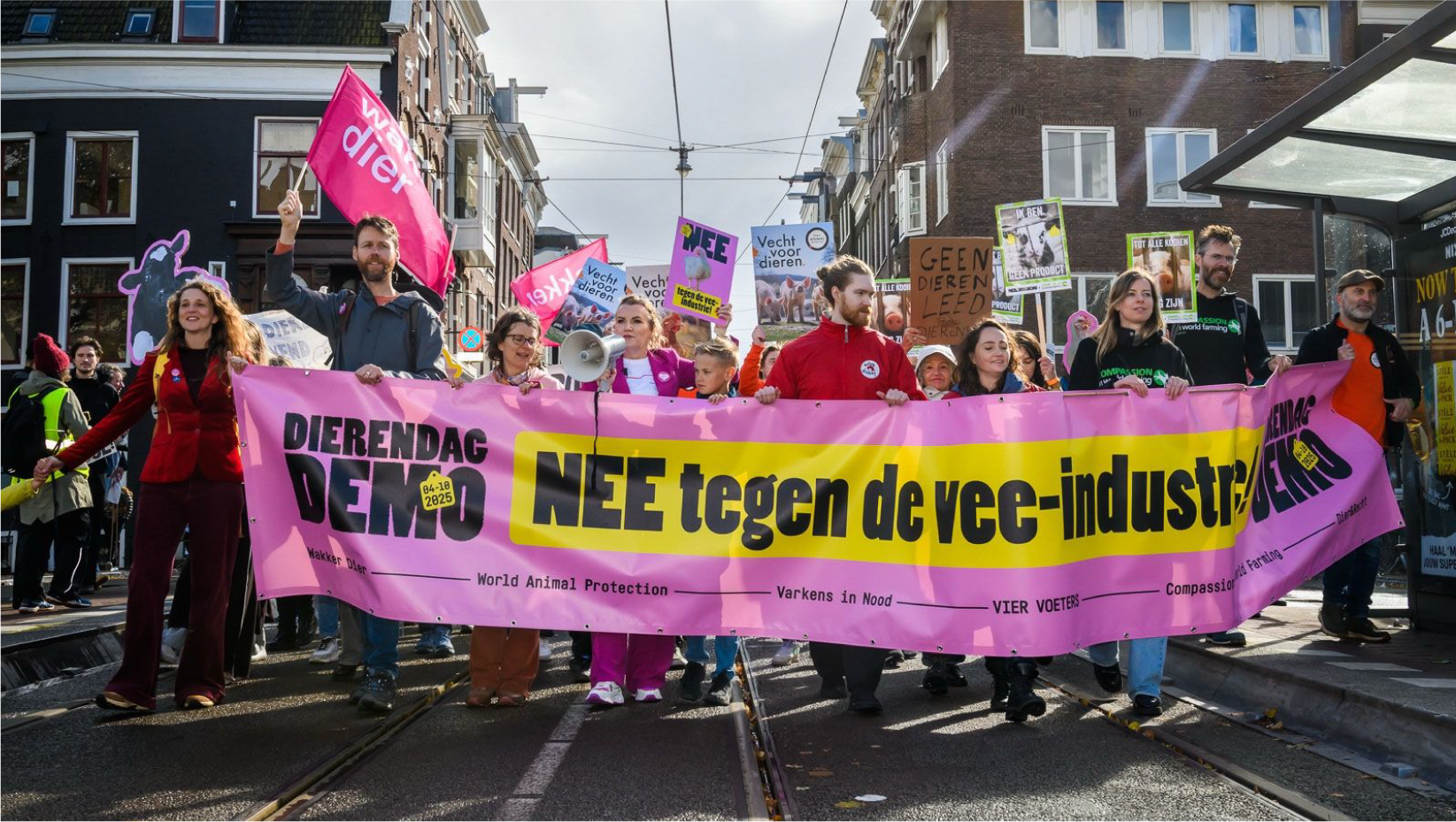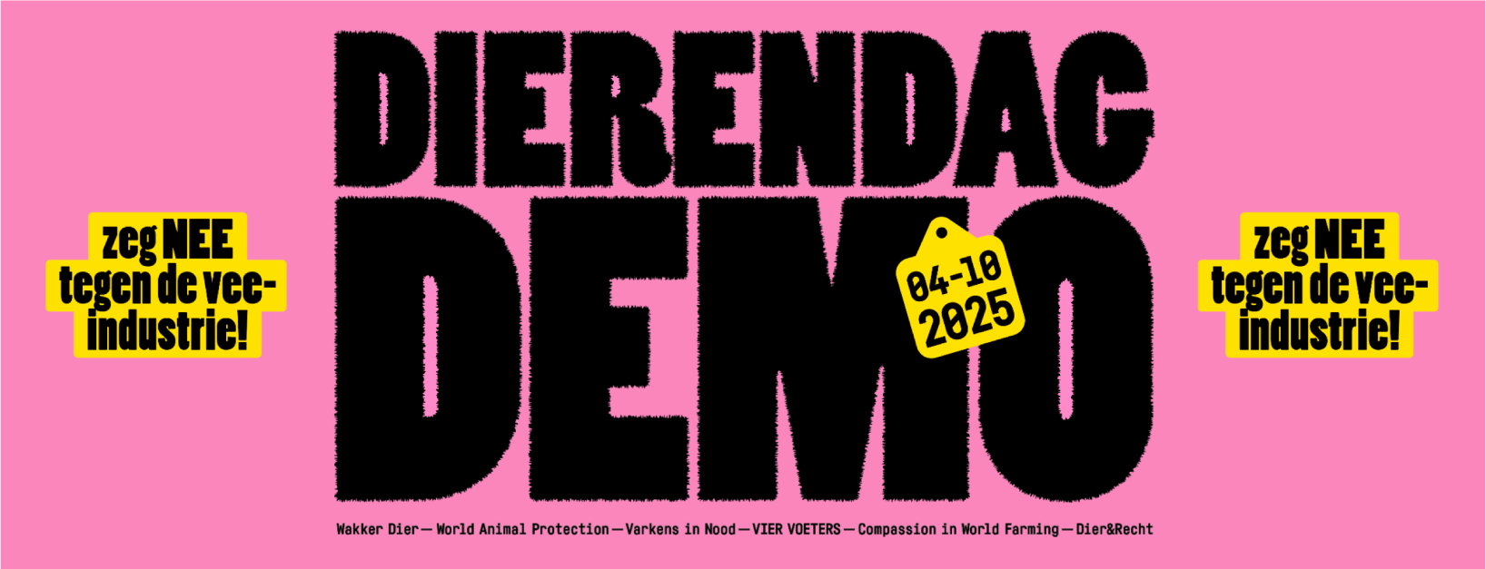 On World Animal Day 2025, Wakker Dier, together with various allies, organized the Dierendag Demonstration in Amsterdam. The action drew attention to the ongoing political promises regarding the welfare of farm animals — promises that have remained unfulfilled for over twenty years. Despite commitments to adapt farming systems to the animals rather than the other way around, painful procedures such as tail docking, dehorning, and toe amputation are still common practice.