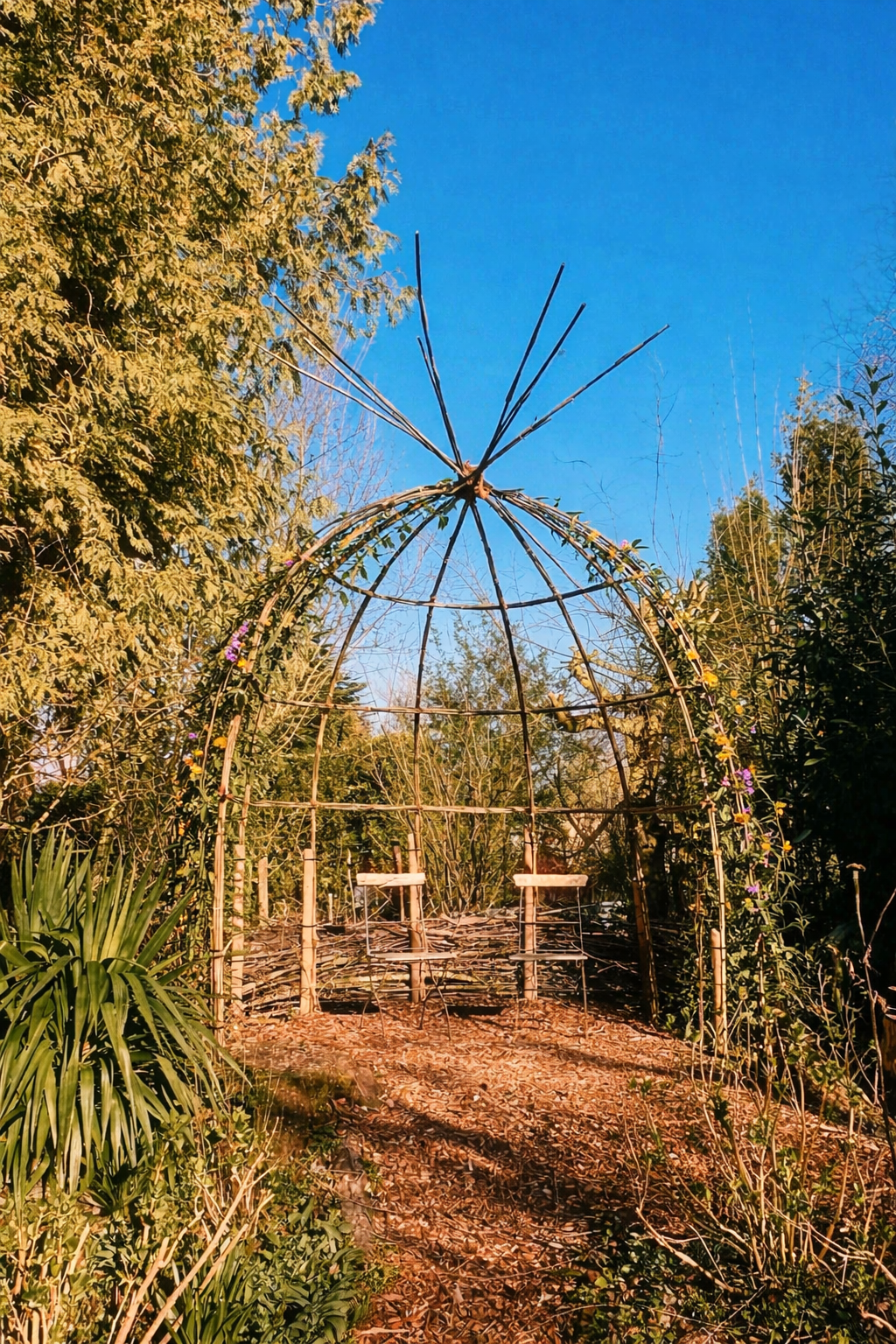 Some see bamboo as a blessing, others as a problem. Fast-growing and hard to control, it can quickly take over a garden. But reimagined as a resource, it becomes an opportunity. This cradle-to-cradle bamboo pergola functions both as a living shade structure and as a composting system for garden cuttings. Let it grow!