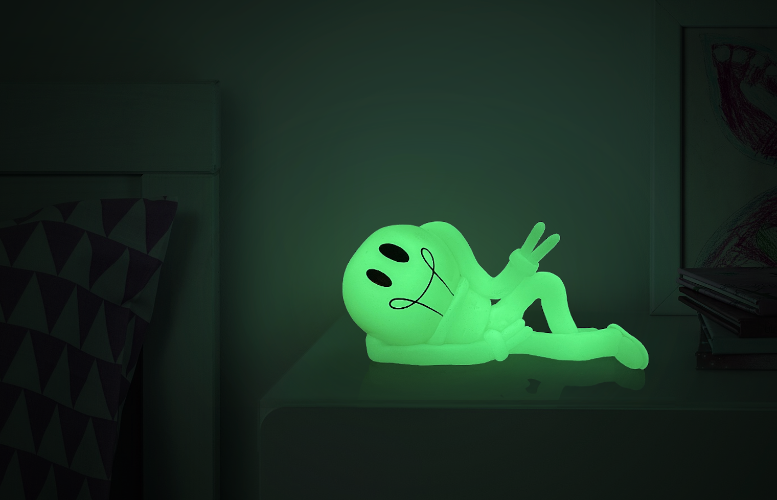 Imagine a night light made from mesmerizing glow-in-the-dark material. When darkness falls it will wake up and protect you from scary shadow, so you can have good sleep till dawn.